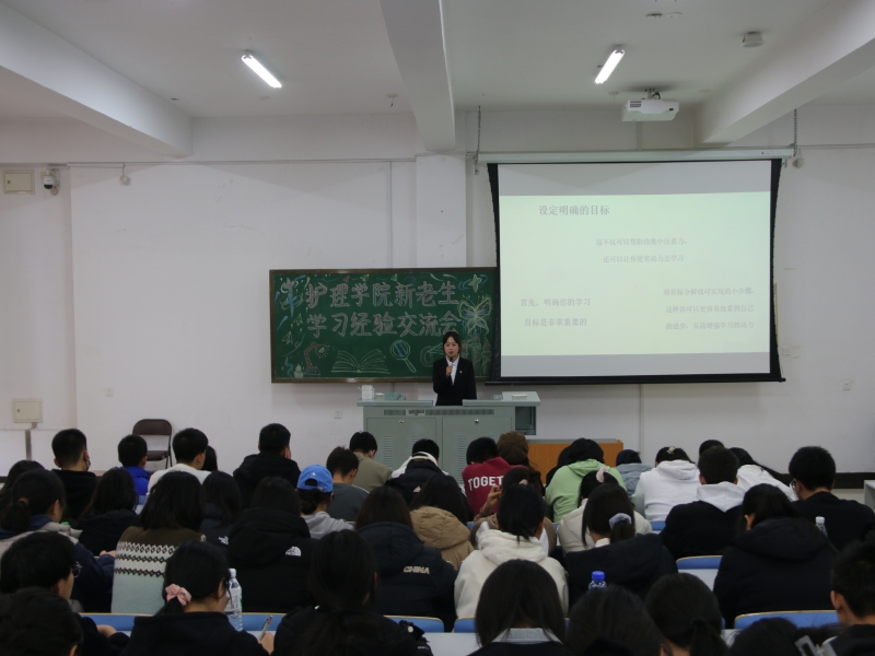 活动伊始,由2021级杨芳懿同学为新生们分享如何缓解学习焦虑。他指出,老员工活中有迷茫、内耗、焦虑,这都是很正常的情况。在生活中,要避免不必要的社交,放平心态、顺其自然;在繁忙学业中,多出去走一走,及时行乐;更要专注于自身,认准目标,抓住机会,不断鼓励自己去见识更广阔的天地。随后,2021级胡新羽同学为新生们分享了护理学专业的专业优势与就业前景,她以诙谐幽默的语言,让大家感受到了公司护理学专业先进完备的教学设施,良好且多面化的就业前景,增进了新生们学习的信心与动力。其次,2021级王鑫同学对综合测评、奖学金、学分绩点转换等问题进行了讲解,让新生们了解如何才能达到高绩点,高综测,拿到奖学金,提醒同学们不仅要努力学习还要积极参加学院的各项活动,充分调动了员工的积极性。接着,2021级杜旭媛同学从五个方面为新生介绍了如何发展为党员及一些相关注意事项,很好地解决了新生对于入党流程的困惑,为新生未来进步发展道路提供了明确方向。紧接着,由2022级王润同学分享学习方法并进行课程介绍,她从八个方面为新生们分享了自己的学习经验,为同学们提供了实用有效的学习方法。在课程介绍的部分中,王润同学为新生们详细地讲解了学分与绩点的关系,让大家对绩点构成有了进一步的了解。最后,由2022级郑涵兮同学为大家分享英语四六级考试相关的内容。她详细介绍了英语四六级考试题型及答题技巧,并督促大家从现在开始积累单词,为英语四级考试做好准备。
